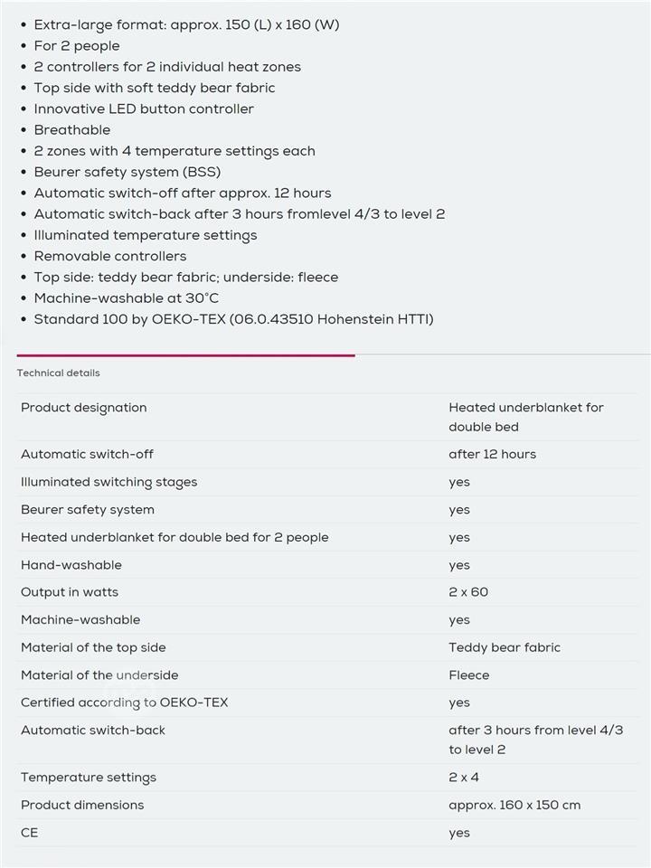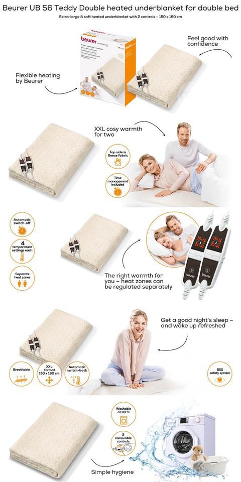 Electric, double blanket, washable, double thermostat, Beurer UB56XXL