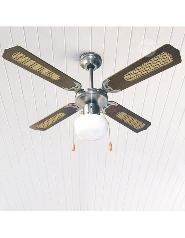 4 wooden blades with Vienna straw inserts, rattan finish.