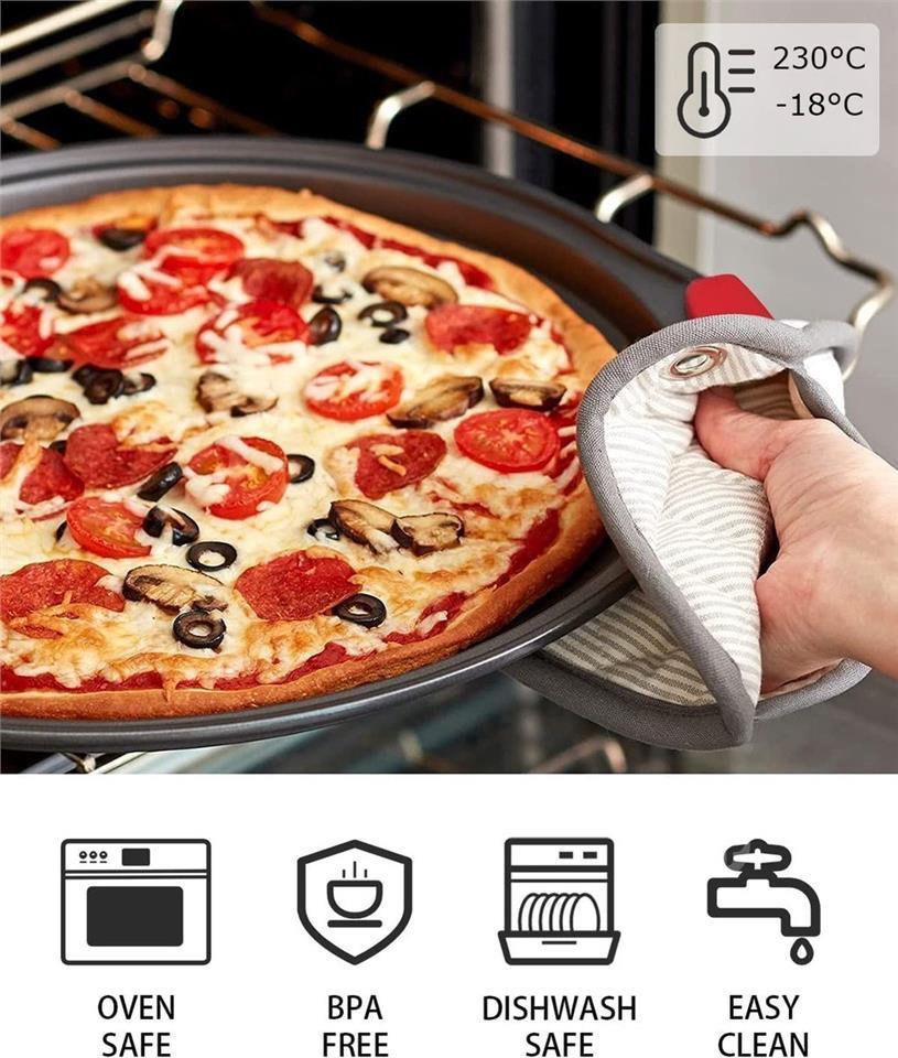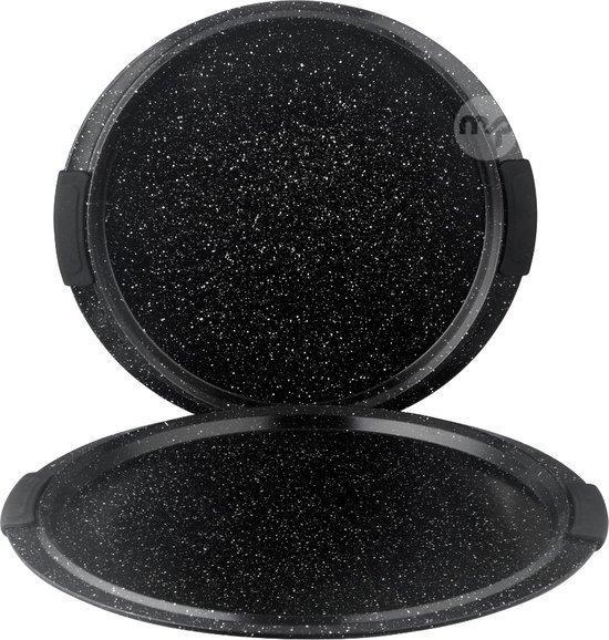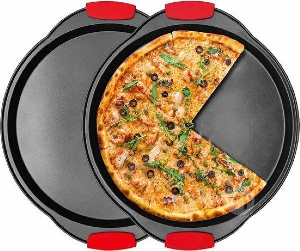 2PCS, 38-43 cm, pizza pan, carbon steel, silicone-handle, RoyaltyLine PZ02-Black