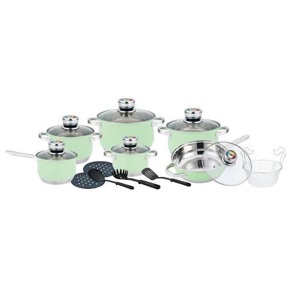 18 pcs, cookware set, green, stainless-steel, glass-lids, Herenthal 1801GN