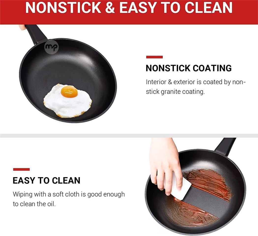 A standard pan with non-stick coating is made of the Teflon fabric and it contains the substance PFOA, this substance overheats and becomes bad for your health, with the marble tiles of Royalty Line, its not the case.