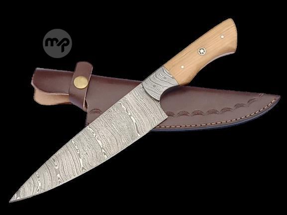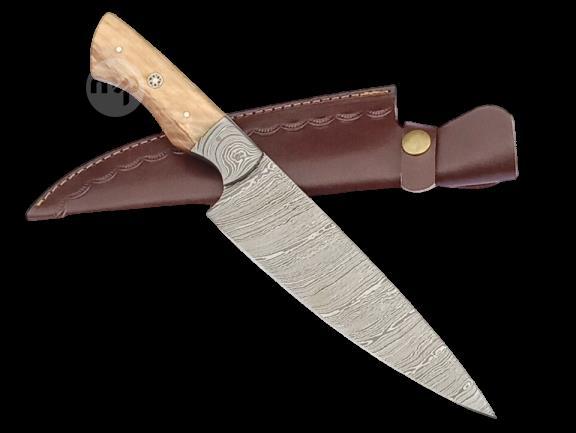 2 pcs, handmade, chef knife, damascus steel, olive wood handle, leather case SCZ-974