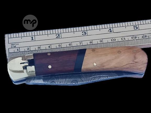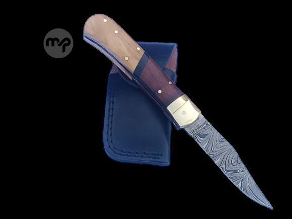 MODEL NO=SCZ-937(A) BLADE LENGTH=11.25 CM HANDLE LENGTH=12.0 CM BLADE MATERIAL DAMASCUS STEEL HANDLE MATERIAL ROSEWOOD • CLIP MATERIAL BRASS HARDNESS 63-65 HRC