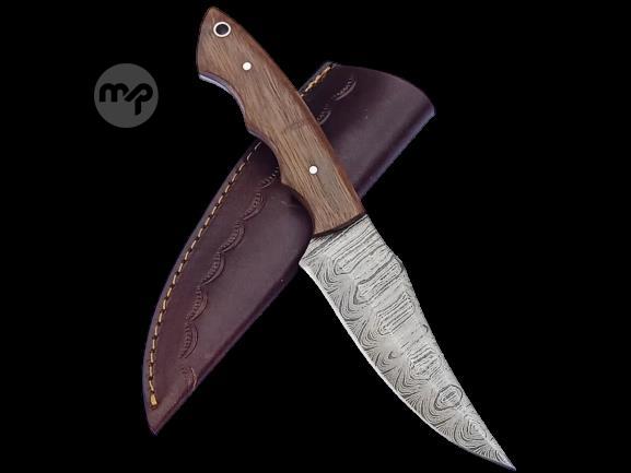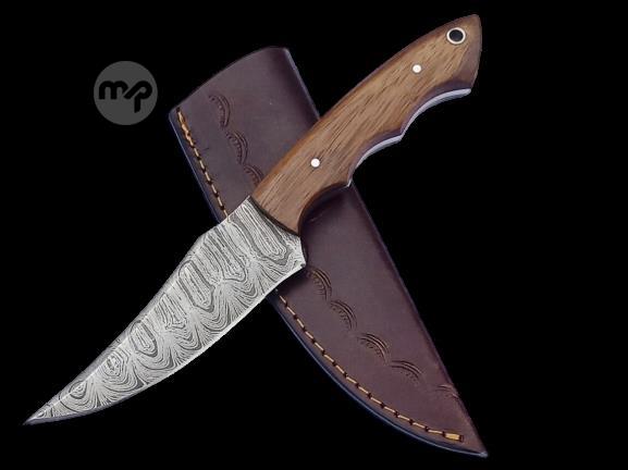 2 pcs, handmade, skinning knife, damascus steel, rosewood handle, leather case SCZ-912