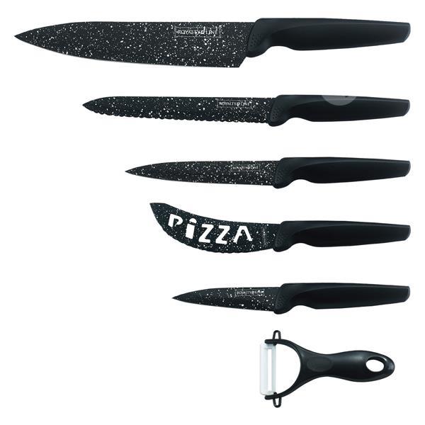 ROYALTYLINE RL-MB5N 6PCS KITCHEN KNIFE, BOX-SET, MARBLE COATING, CHEF, BREAD, PIZZA, CARVING/SLICER, UTILITY, PEELER