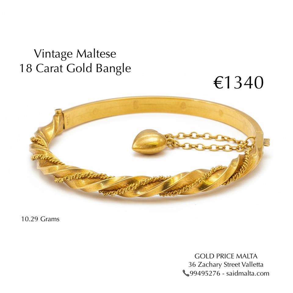 Vintage Maltese 18 Carat Gold Bangle