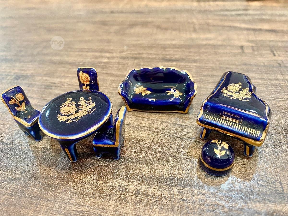 • Miniature Furniture Set (Table with chairs, sofa, piano & stool) Lovely cobalt Limoges dollhouse set.-€80