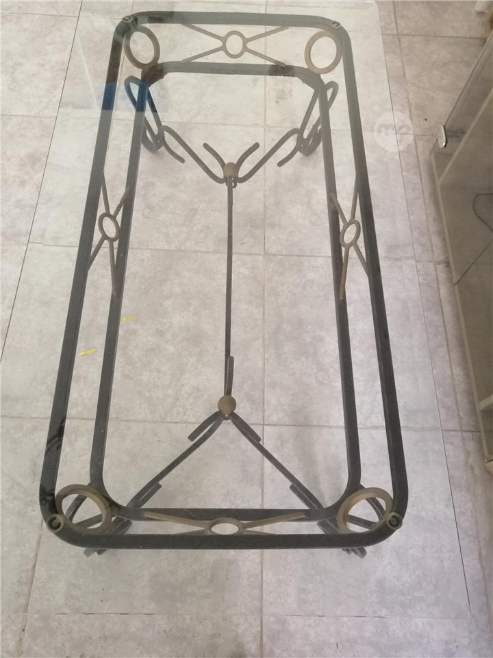 Coffee table. Wrought iron base with glass top.