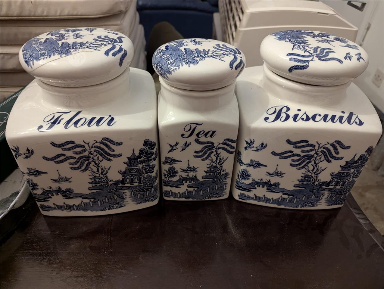 Flour Tea and Biscuits Jars, for sale as a group. In excellent condition.
