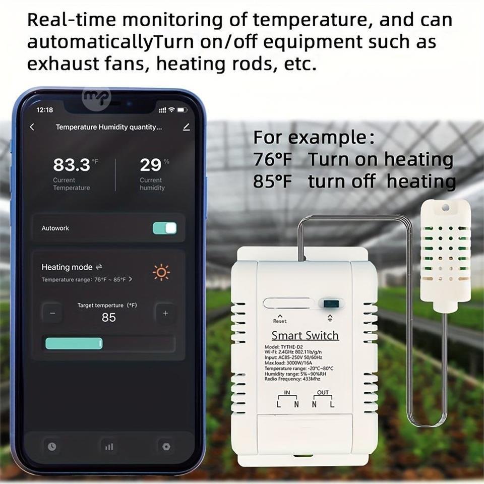 The integrated temperature and humidity sensor allows the module to monitor environmental conditions in real time. When preset thresholds are met, the relay can automatically switch connected devices on or off. Use cases include: