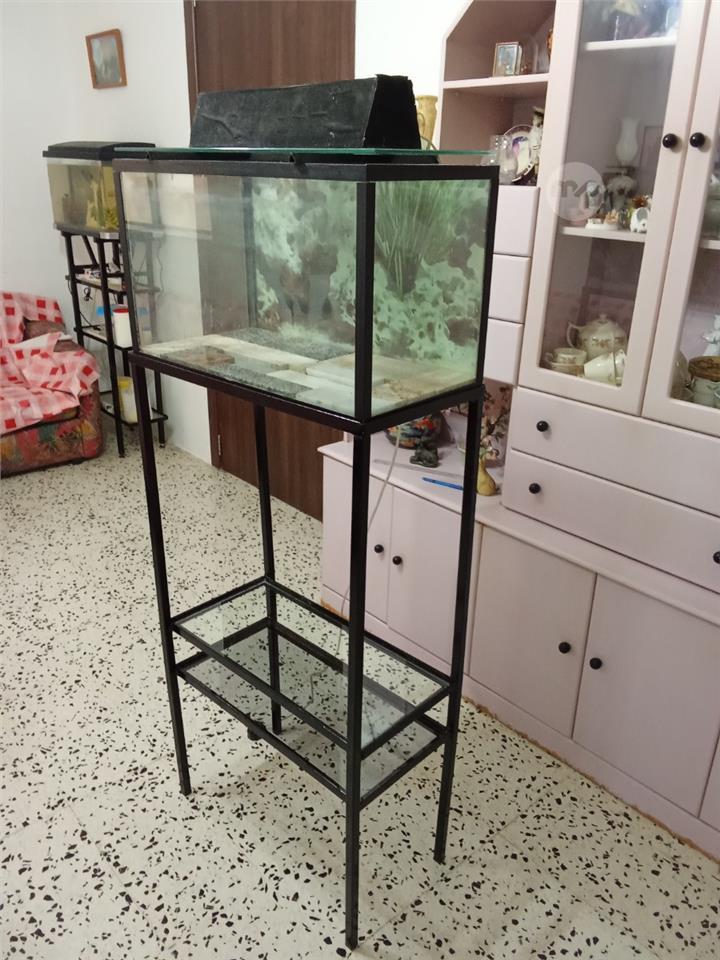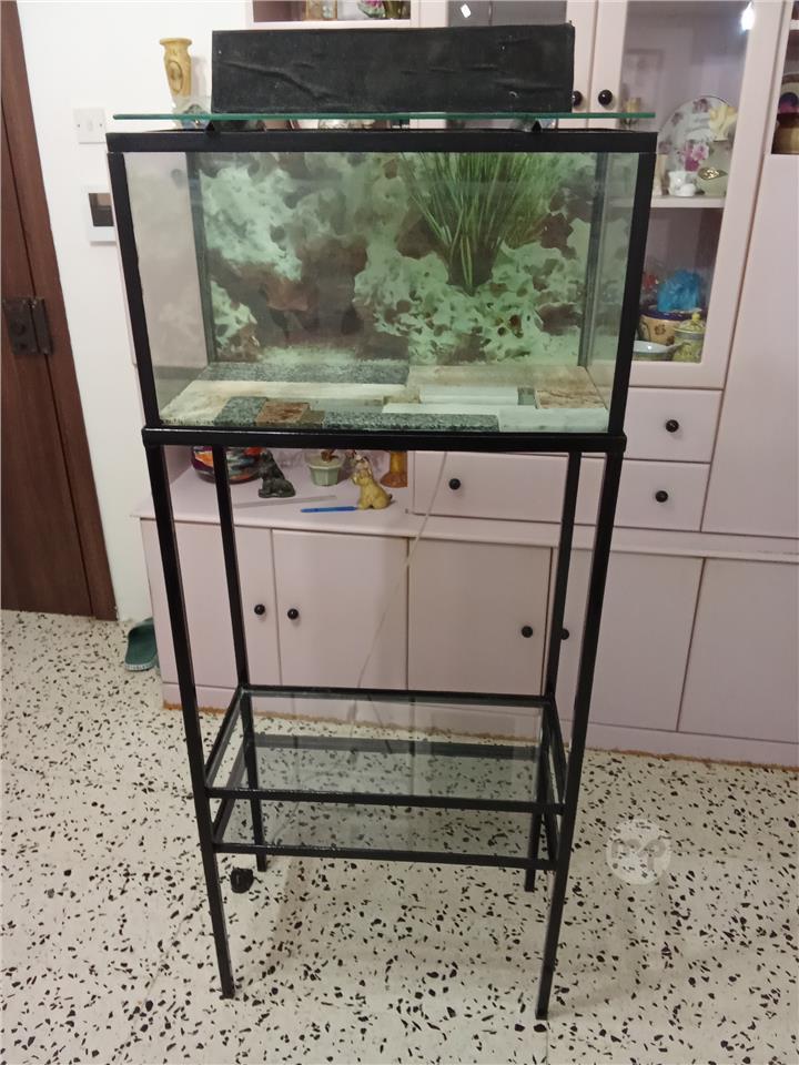Stand lenght 62 cm, width 32 cm, height 112 cm. Aquarium comes with tiles instead of gravel and light and stand. Price 60 euro for all. i do delivery if you want to.