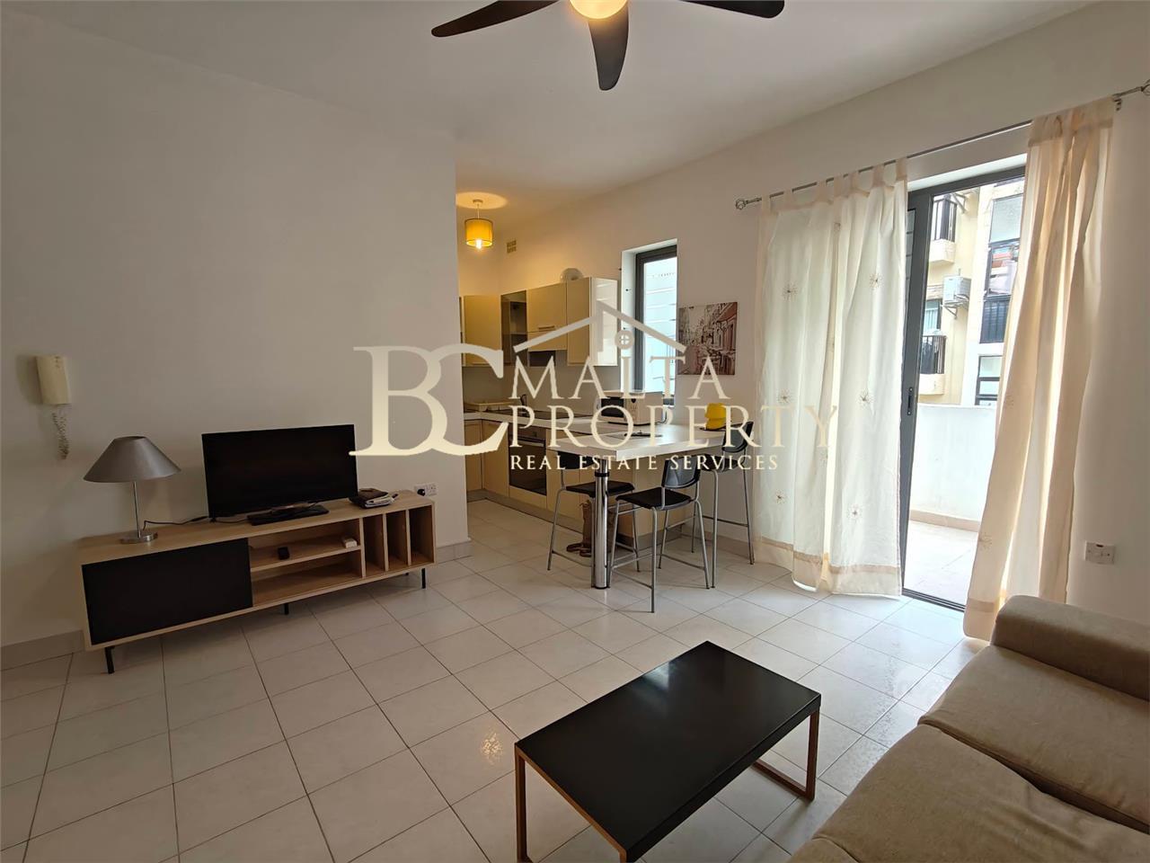 A 3rd floor squarish layout fully furnished 1 double / 1 spare room (which is ideal to be used as study office room or visitors room ) & 1 bathroom with a bath, apartment in a smart block with lift located a corner away from Tigne Point.