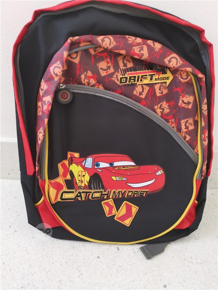 A brand new big Lightening Mcqueen rucksack or school bag with 3 different sized compartments and 1 other small internal compartment. Length is about 42cm and 36cm in width. Message for any further details.