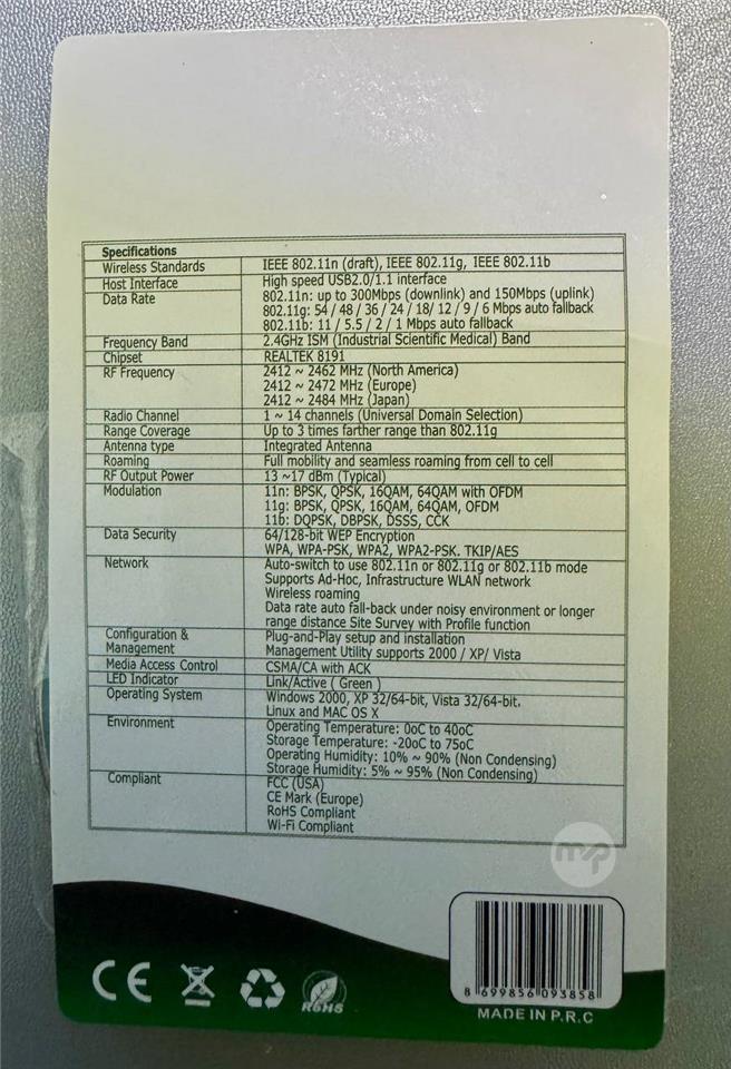 Wireless USB Wi-Fi Adapter 300 Mbps (802.11N)