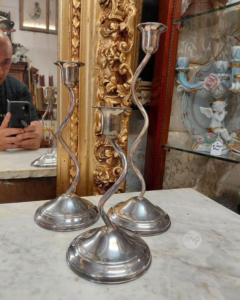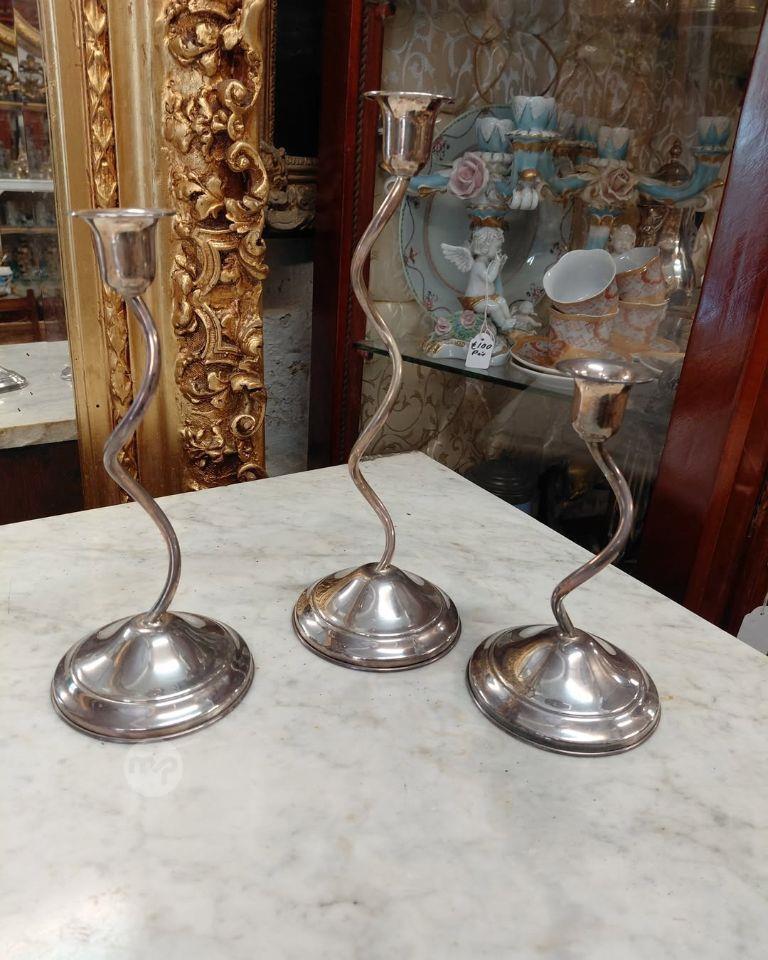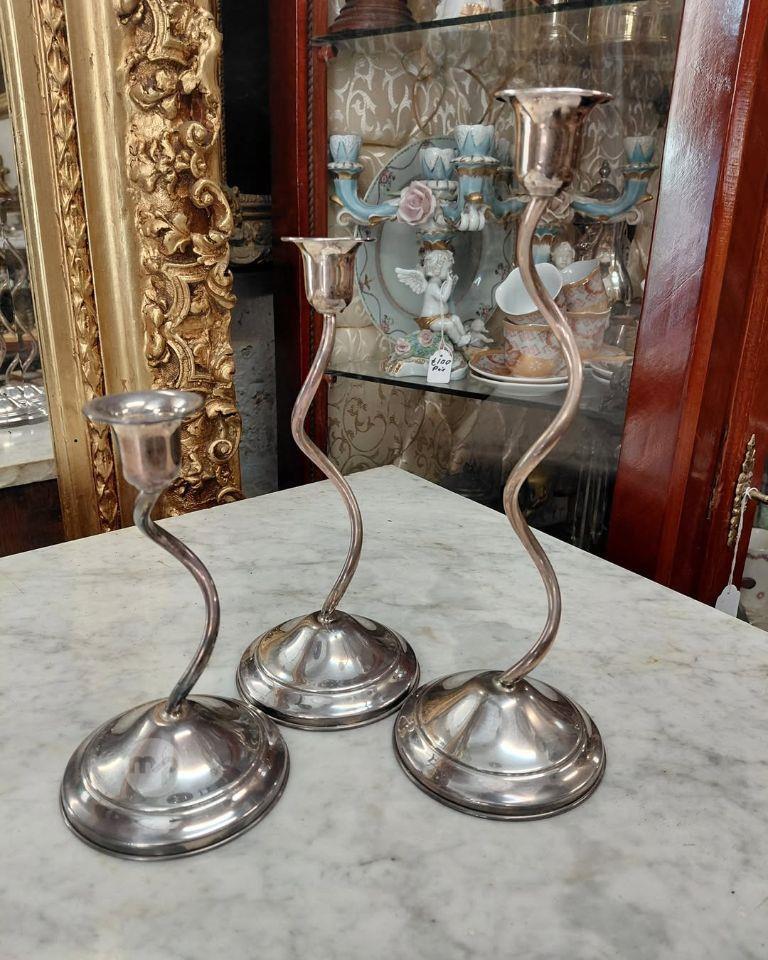 A Set of 3 925 sterling silver Candlesticks Larger one measures 27 cms long .