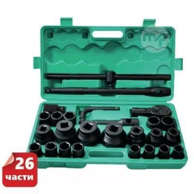 The set contains high-quality tools: adapter 3 / 4" and 1", two extensions, ratchet, T-shaped swivel, movable joint and 20 pieces of inserts with dimensions 21 - 65 mm. The tools are made of high-quality, durable materials with a guarantee for a long service life.