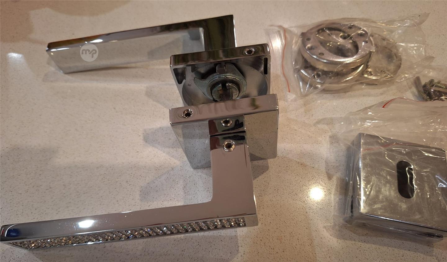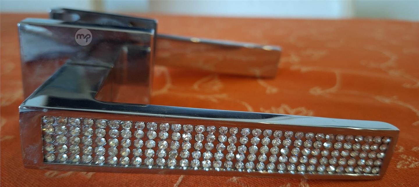 3 beautiful brand new full sets of silver door handles with inlaid crystals.