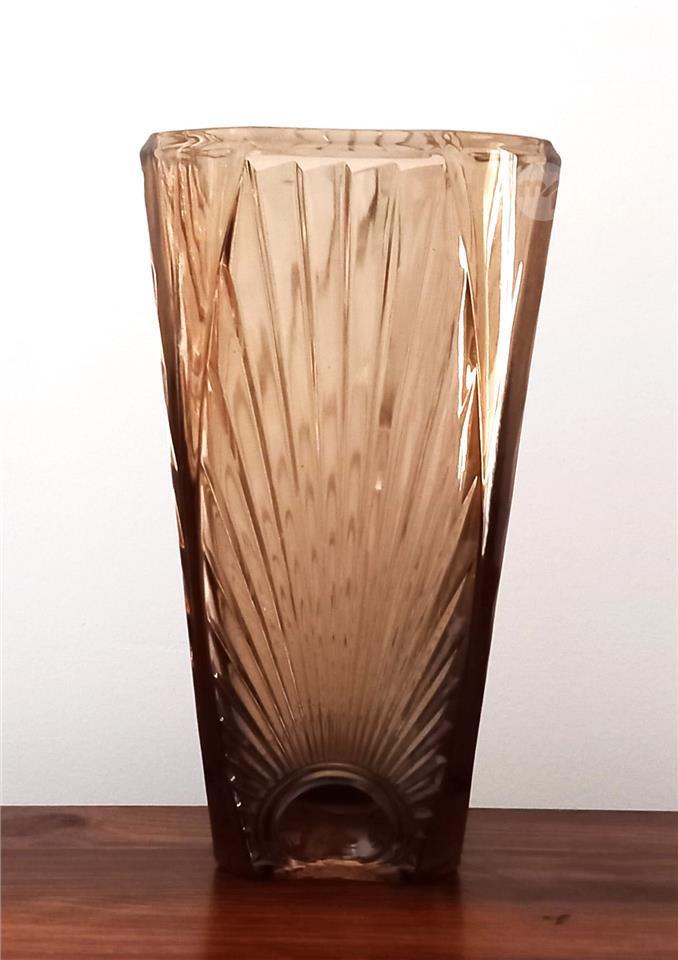 ANTIQUE ART DECO BROWN GLASS VASE - SUNBURST