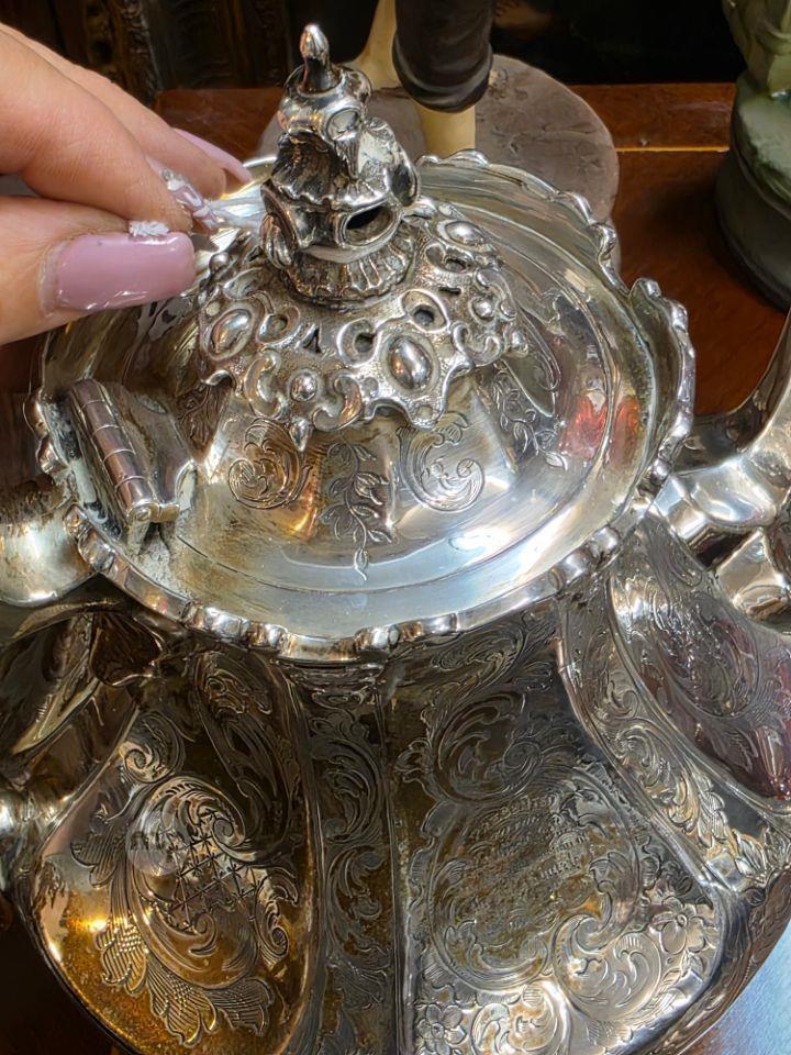 A Magnificent Engraved Antique 19th Century English Silver Coffee set