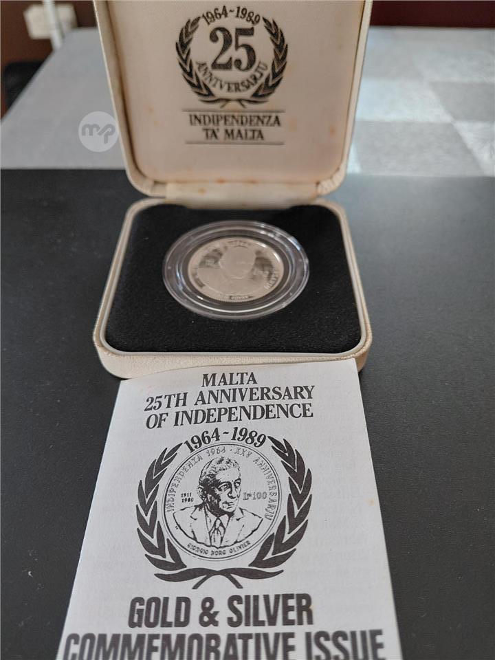 Silver Coin - Malta 25th Independence Anniversary (Borg Olivier Commemorative Coin)