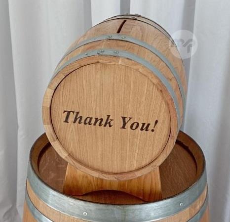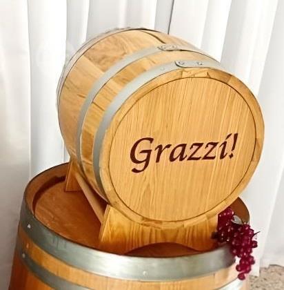 Each barrel can be engraved with either "Cards," "Grazzi!," or "Thank You!" and features a secure slot where guests can conveniently insert their gift cards.