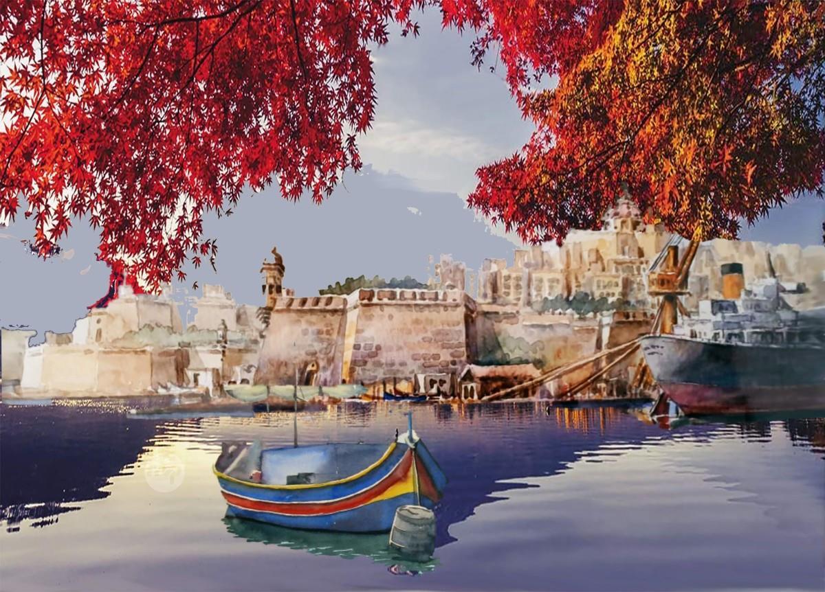 DAHLET IL-PORT VALLETTA ---- ORIGINAL HAND PAINTING OIL ON CANVAS 70X50