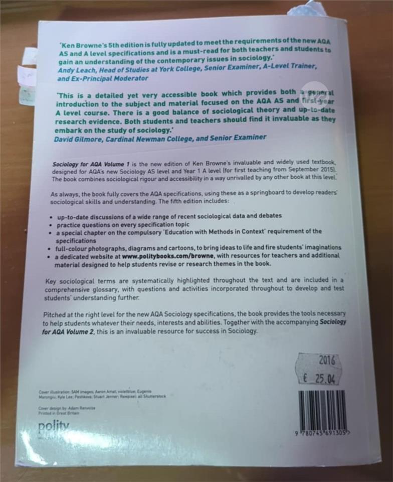 Sociology for AQA Volume 1 is the new edition of Ken Browne's invaluable and widely used textbook, designed for AQA's new Sociology AS level and Year 1 A level (for first teaching from September 2015). The book combines sociological rigour and accessibility, matching the AQA specifications and using these as a springboard to develop readers' sociological skills and understanding. The fifth edition includes: