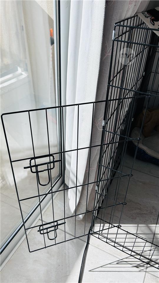 This metal playpen consists of 8 panels (width: 60cm each). Total circumference: 480cm. Height: 91cm. Used to keep my puppy safe before but now he’s grown :)