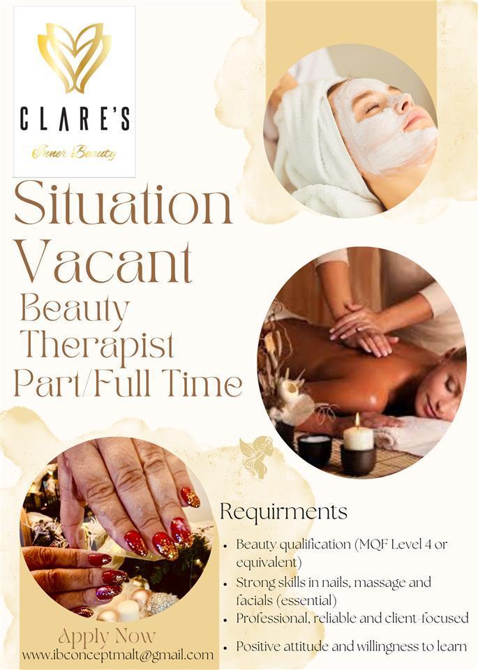 Situation Vacant-Qualified Beauty Therapist for Salon in Valletta