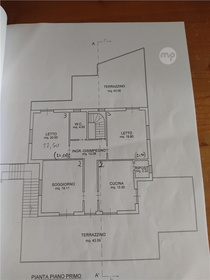 First floor of 120 sqm with two terraces, front and back, for a total of 130 sqm;