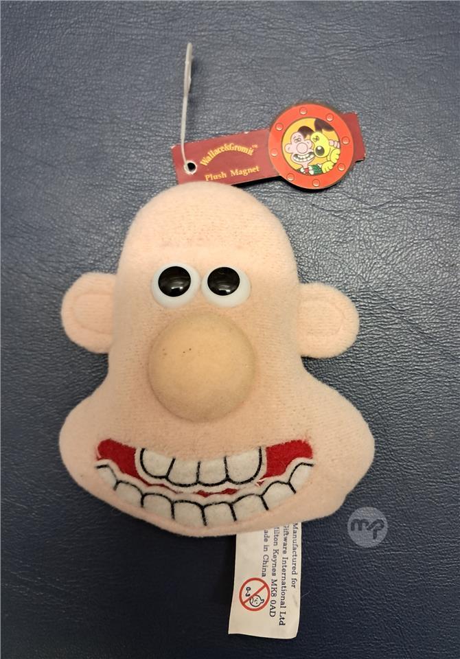 Collectible vintage Wallace and Gromit 3D plush fridge magnet, with swing tag