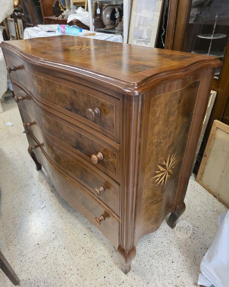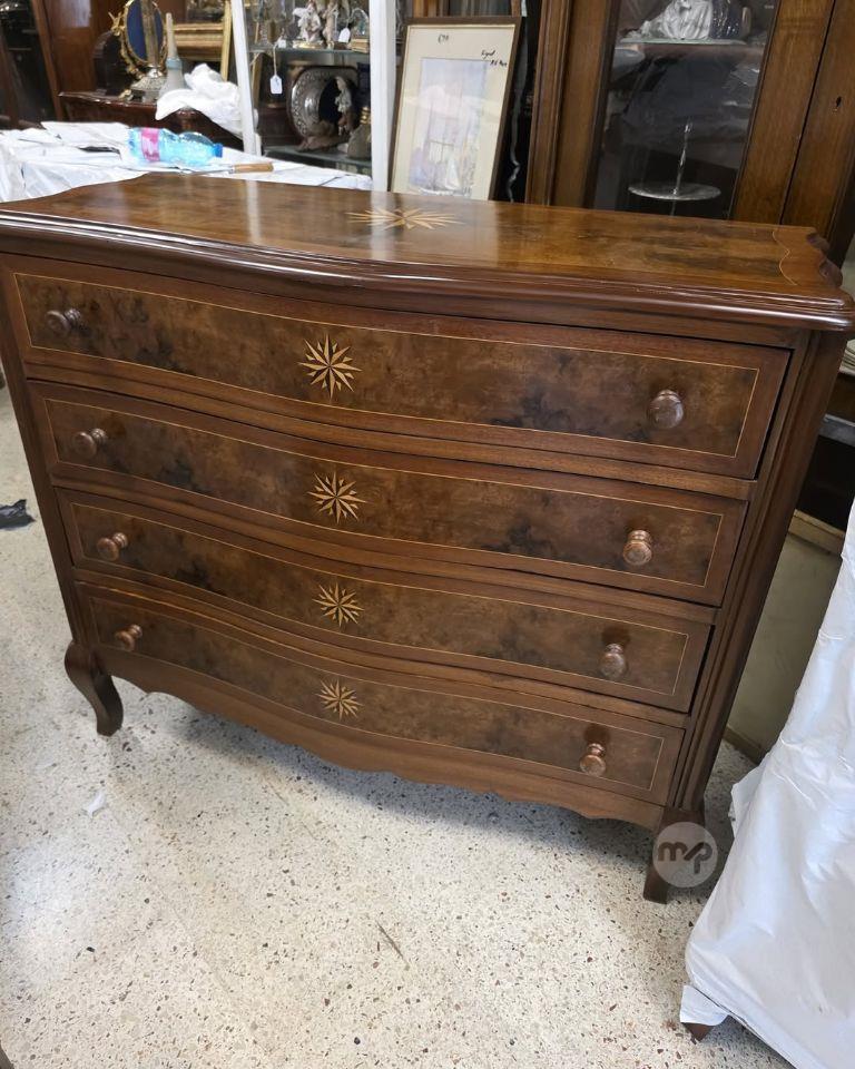 An Elegant chest of four drawers,with inlaid star motifs on top front and sides.