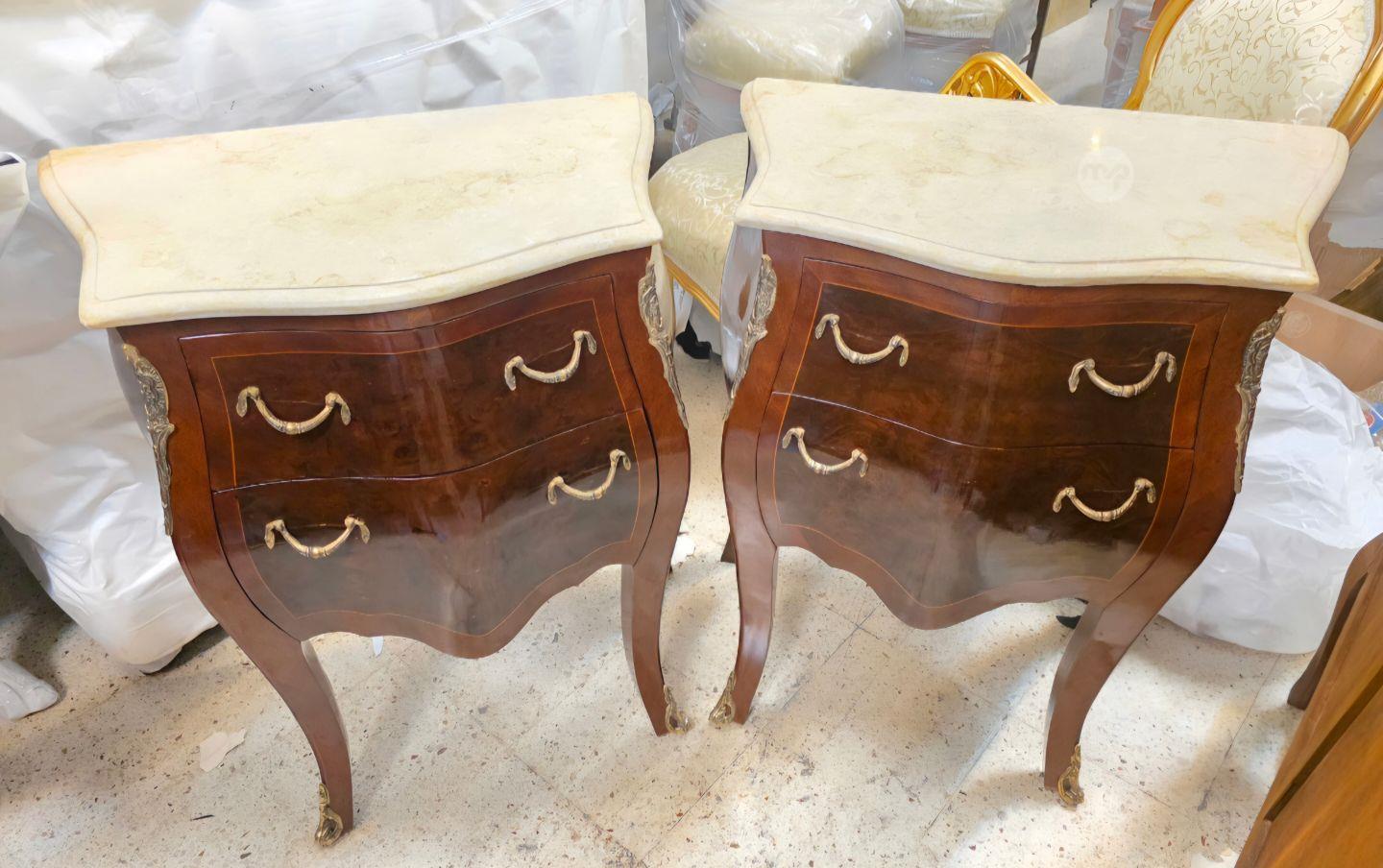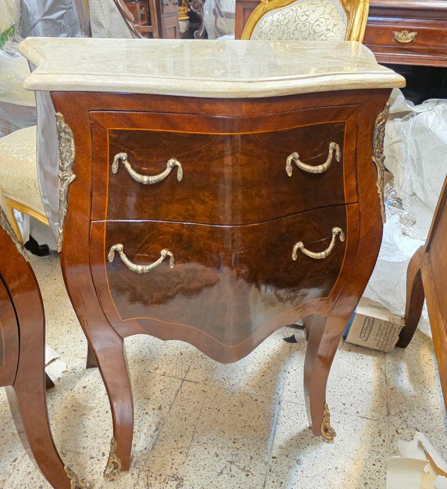 Two side commodes/small chests with marble tops. Measures 62x38x76cms 220each