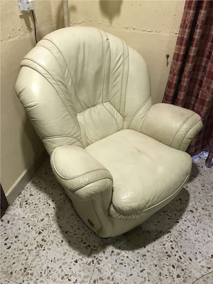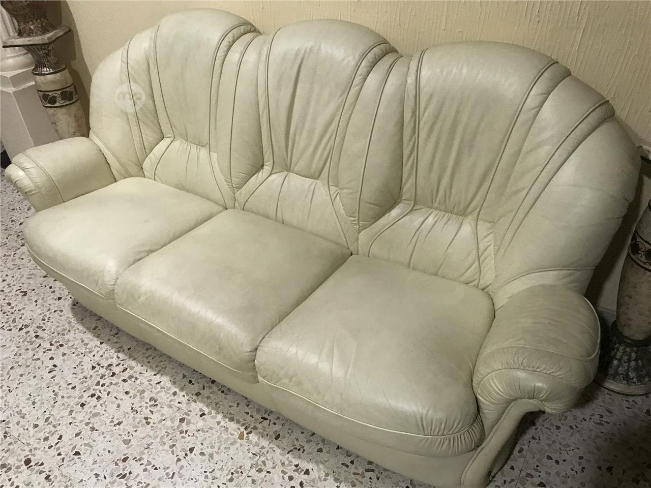 Beige leather sofa in very good condition.
