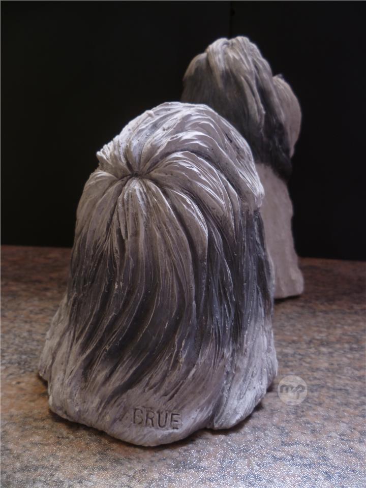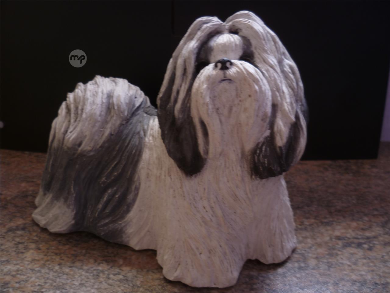 GREAT GIFT - VINTAGE 1995 BLACK & WHITE LARGE SANDSTONE SHIH TZU DOG FIGURINE BY SANDRA BRUE