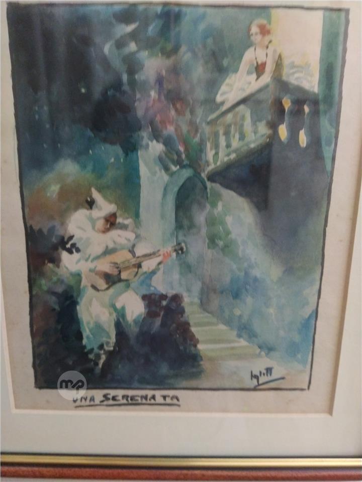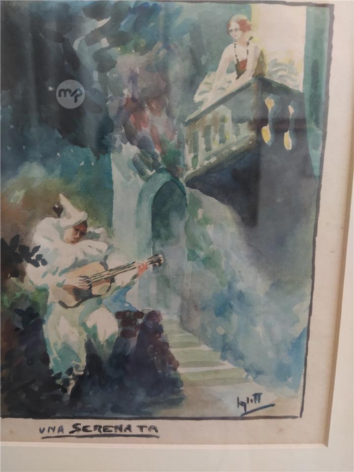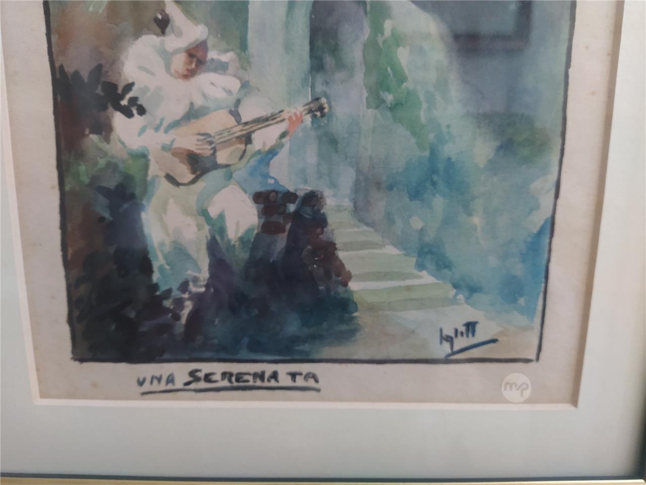 An original Watercolor painting by ANTON INGLOTT & signed by Artist. Titled LA SERENATA.