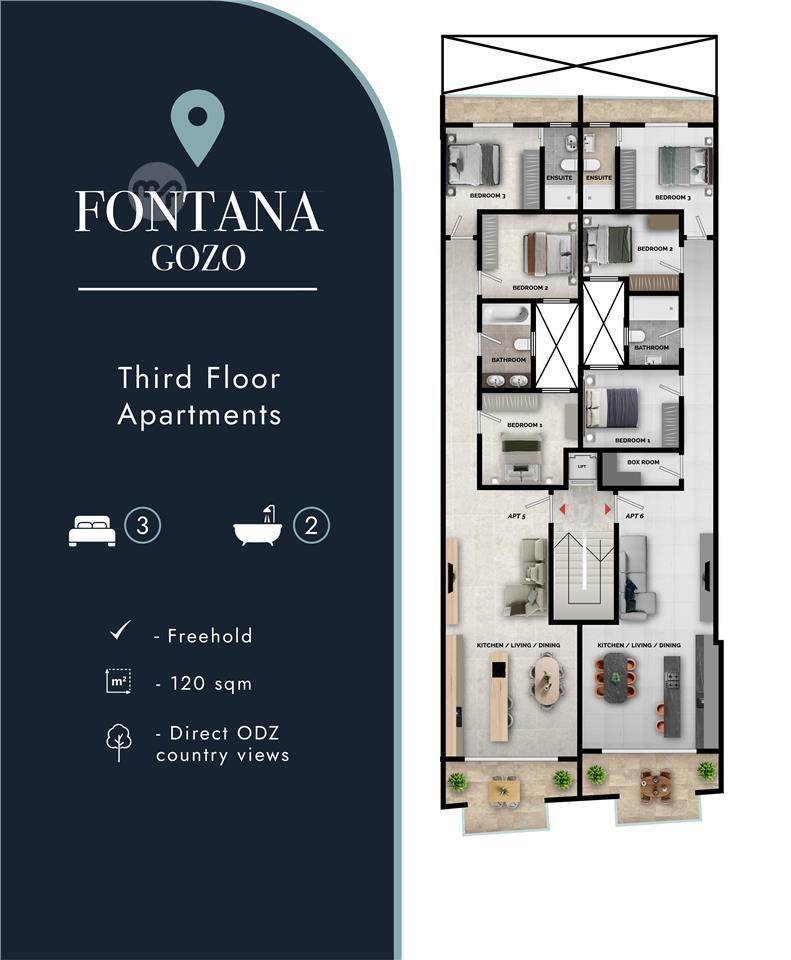 🔹 2 × Three-bedroom apartments featuring a main bathroom, an ensuite and a laundry/boxroom