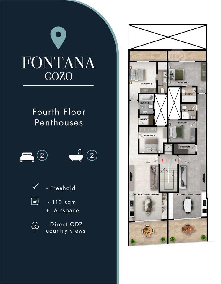 🔹 2 × Two-bedroom penthouses featuring a main bathroom, an ensuite and a laundry/boxroom + airspace