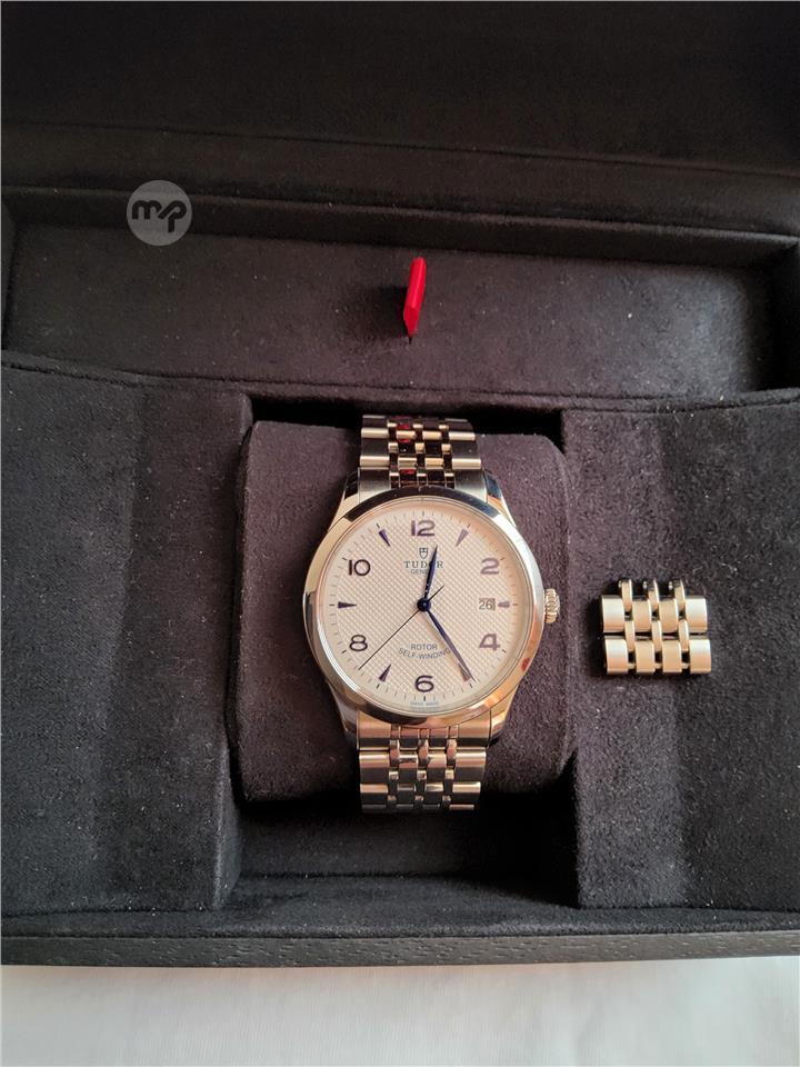 As new, Mint condition, Top quality Tudor 1926, Boxed full set, Tudor guaranteed until March 2029, Stainless steel 39mm Case and bracelet with extra links. White textured dial with blue digits,Date at 3 o'clock position, Tudor boxed with guarantee card and books. Payable with Paypal using your card and shipped to you free via registered post. Or by cash if you want to view and pick up, Would make a beautiful christmas present for that special person in your life or yourself. Very near sensible offers considered. Message if interested or for any queries or more photo's Specifications = Saphire Crystal....Self winding Tudor calibre T601 movement.....Power reserve 38 hrs......Wind down crown with Tudor logo in relief.....Waterproof to 100 Metres......White opaline dial with blue digits date at 3.