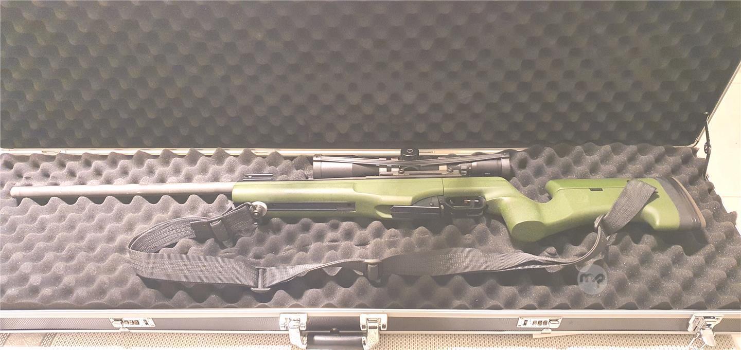 Sako TRG 22 in .308 Winchester in the classic green stock configuration, fitted with a Schmidt & Bender 3-12x50 riflescope Made in Germany. This combination is widely regarded as one of the finest precision / sniper rifle platforms available today. The rifle comes from a private collection, was only used for sight-in and a few test groups and is therefore in virtually as-new condition. Metalwork, stock and controls are excellent and the bolt runs smoothly, exactly as you would expect from a carefully stored collector’s piece.