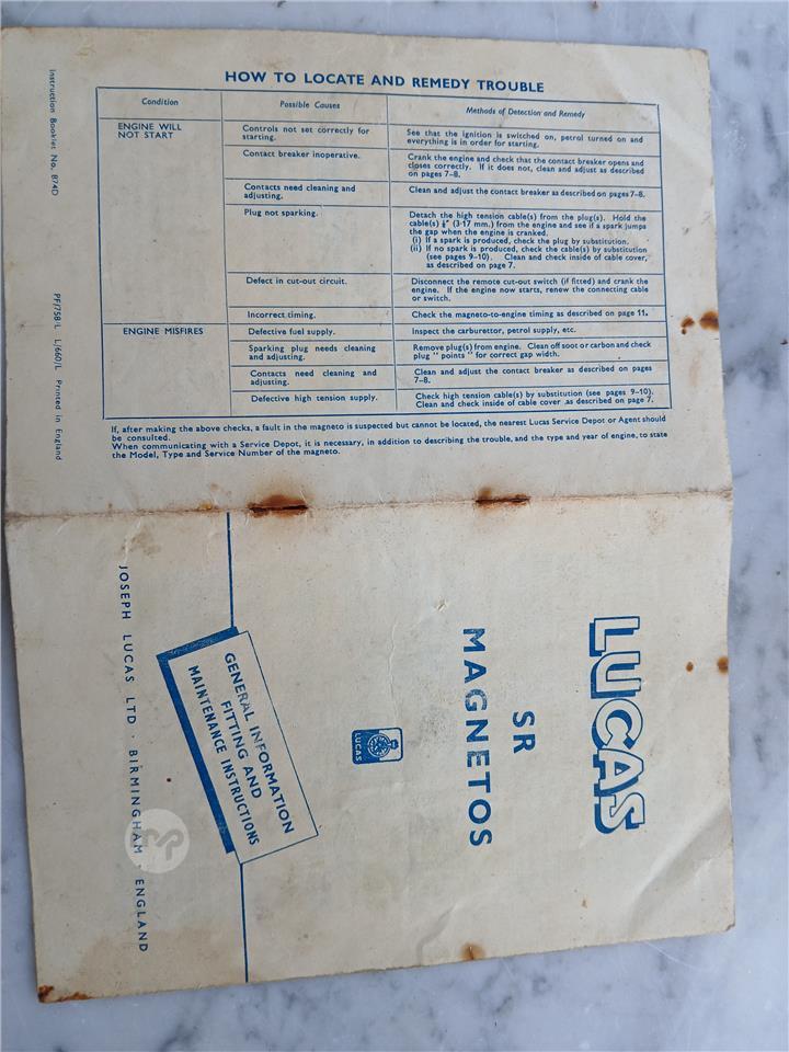 Lucas SR Magnetos - Information Fitting, and Maintenance.