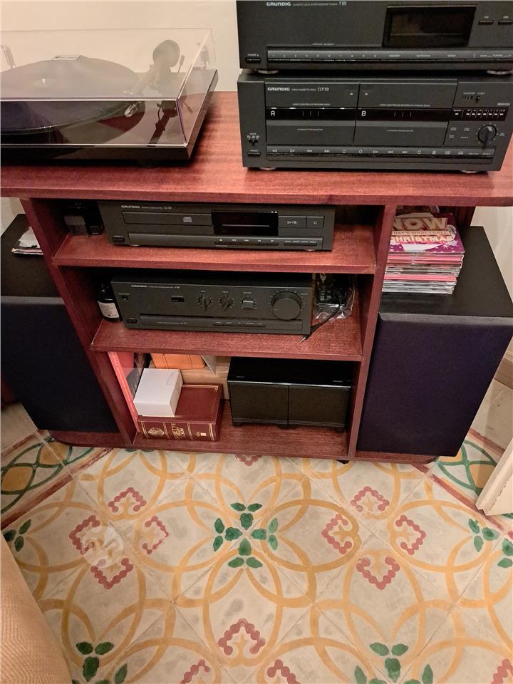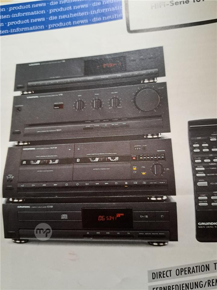 Complete Grundig HiFi system, including amplifier V101 with 2x5a watts music power; tuner with frequency synthesizer, station search and 30 programme intermix station memory; twin cassette and cd player with 16-bit converter and random play, together with PS Prisma turntable and two speakers. Colour : black. Reason for selling: upgrading