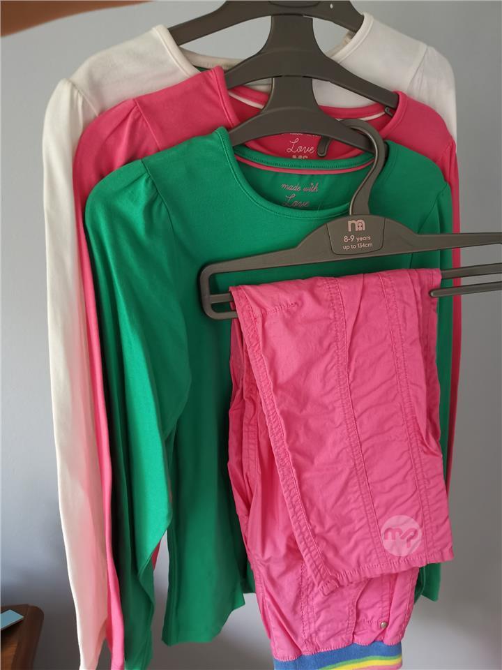 A bundle of brand new mothercare clothes consisting of 3 plain good quality long sleeved cotton tops(green, pink and white) and a pair of pink trousers all for ages 8-9 years approximately (see photos for exact measurements). All with Mothercare tags, selling for less than half their original price. Check out other listing's if interested and message for any further details.