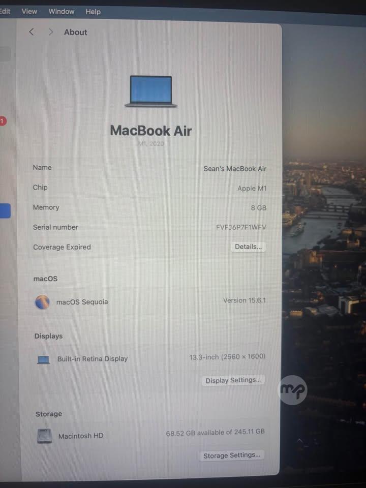 Selling my MacBook Air M1 (2020) with 8GB RAM, 256GB SSD.