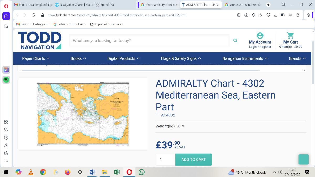 ranging from 1:5000 to 1;30000 most issued by the admiralty: covering all of the Mediterranean includes Adriatic, Greece, Italy, Spain, Tunisia, Turkey Ionian Islands, Corsica, Mahon, Minorca, Sardinia and Sicily. Includes Harbour Charts and scale.Includes: