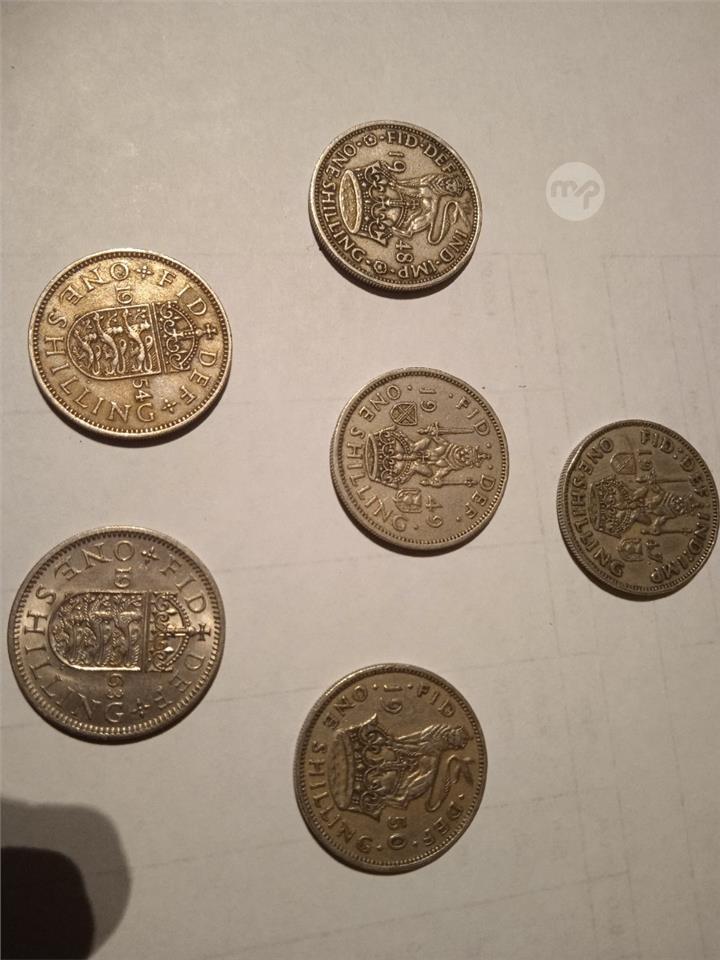 6 One Shilling coins UK dated 1947 1948 1949 1950 1954 1963 price 16 euro