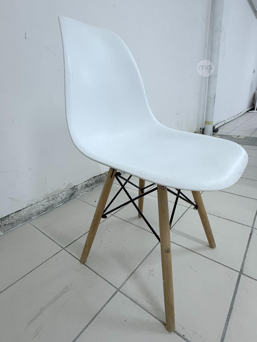 6 chairs, white plastic with wooden legs, price is for all 6 and it is final! Pick-up from Swatar