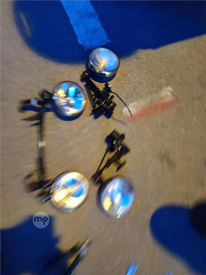 These fog lamps were fit on a Daelim Daystar. They are completed with brackets. 2 fit on the frame and 2 fit on the indicator bracket.