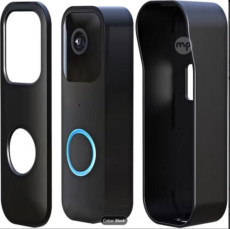 Video Doorbell Wall Mount Protective Cover - Durable ABS, Wind & Rainproof, Easy Installation, Black with Blue Ring Indicator, Weatherproof Doorbell Cover|Modern Doorbell Design|Secure Mounting, Doorbell Camera