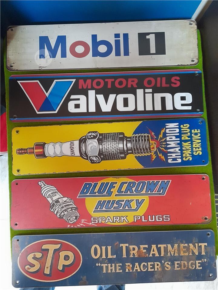 Old car tin signs.